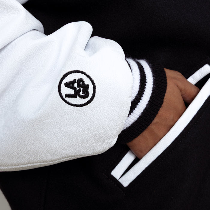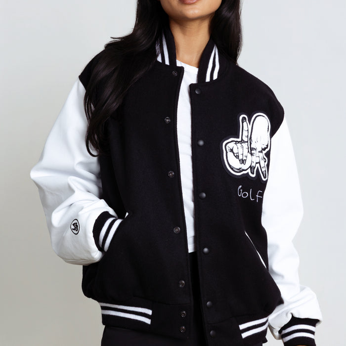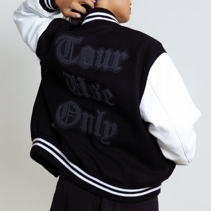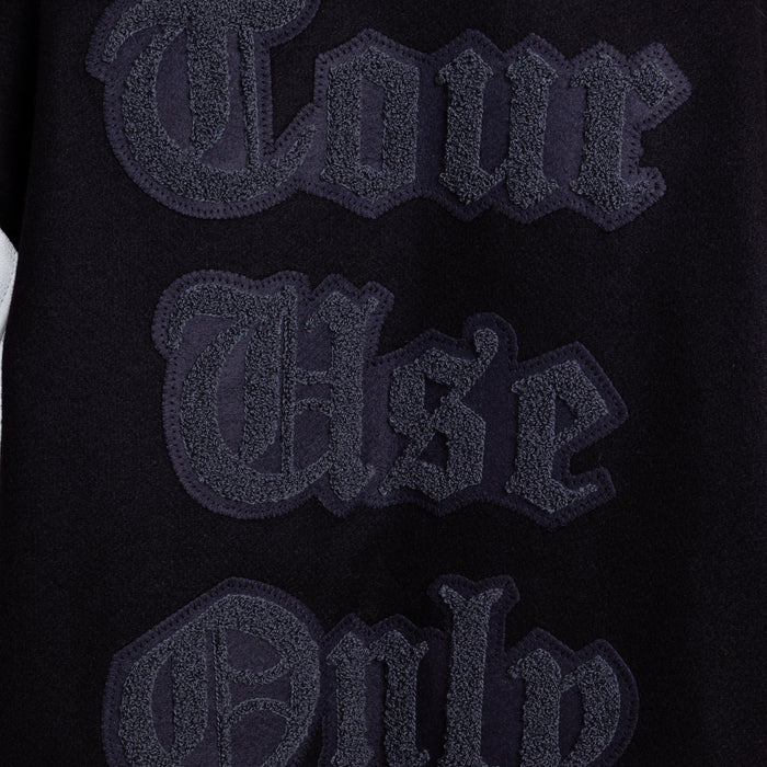As part of the Paris Hilinski x Estevan Oriol collection, this "LA FINGERS" Letterman Jacket is made-to-order and ships within 8-10 weeks of ordering.