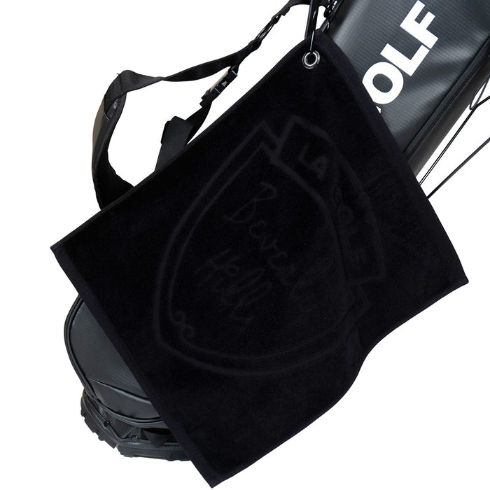 Standard-size premium velour golf towel. Metal ring and clip to attach to your favorite golf bag.