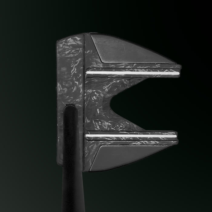 Our all carbon head is 5x less dense than steel. This allows for a majority of weight to be placed on the perimeter of the putter which creates the largest sweet spot in golf.